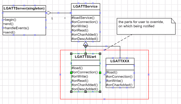 1) Inherit and implement one or more LGATTService, which defines attributes of each service